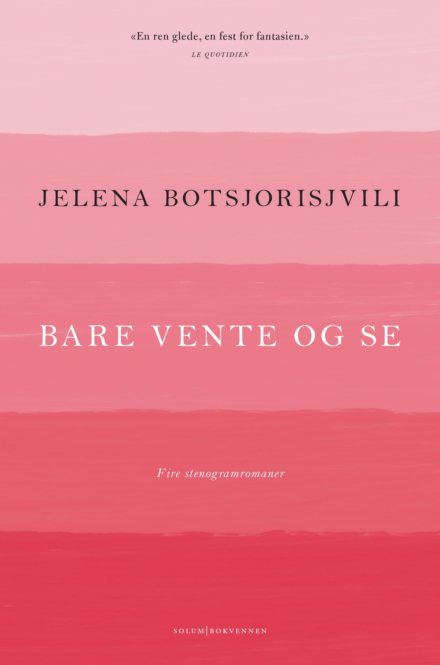 Denne boken inneholder fire kortromaner av den georgiske emigrant.forfatteren .Jelena Botsjorisjvili. Hennes helt særegne, finslipte skrivekunst har fått kritikere til å omtale bøkene hennes som «stenogramromaner». Gjennom korte poetiske glimt utfolder det seg omfattende historier som kan strekke seg over flere generasjoner og forflytte seg over kontinenter. Med underfundig humor og en særdeles rik fantasi, beretter Botsjorisjvili om mennesker på flukt, om krigens meningsløshet, døden og ikke minst om kjærligheten - som selv i de mest absurde livssituasjoner ser ut til finne måter å spire på.