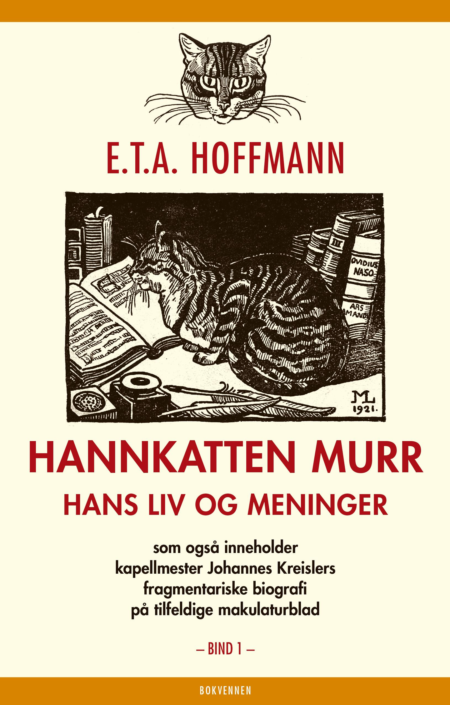 Hannkatten Murr - Hans liv og meninger regnes ofte som Hoffmanns modneste og mest nyskapende verk, og da særlig på grunn av den eksperimentelle og fragmenterte formen. Dette er bind 1 av 2.