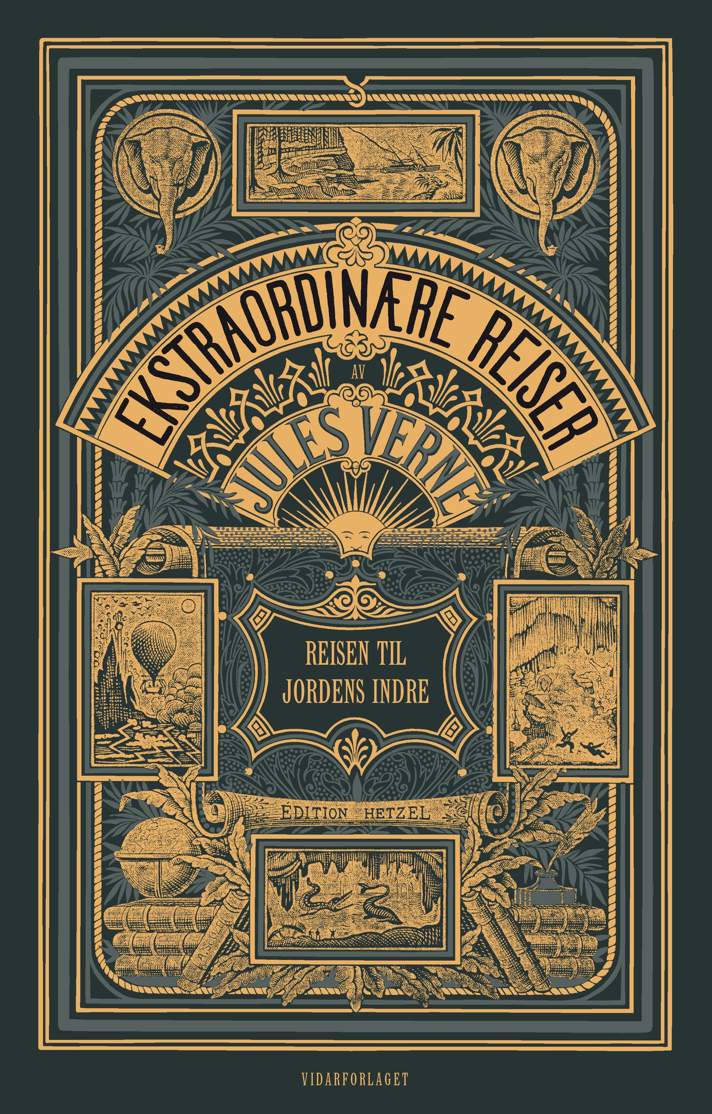 Reisen til jordas indre er den tredje romanen i Jules Vernes stor.slåtte serie «Ekstraordinære reiser», som inneholder flere av verdenslitteraturens mest berømte verker og som har inspirert og gledet lesere siden starten på serien i 1863. Vi er i Hamburg og året er nettopp 1863, da professor i mineralogi Otto Lidenbrock og nevøen Axel får i hendene et gammelt dokument forfattet av den islandske alkymisten Arne Saknussemm. Til professorens store henrykkelse, forklares det her, i kortfattet kryptisk runeskrift, hvordan man tar seg inn til jordens midtpunkt. Funnet bringer våre ivrige forskere snart til Island, der de sammen med guiden Hans Bjelke danner en trio som skal forsøke å ta seg til målet gjennom den sovende vulkanen Snefellsjøkull. Nedstigningen i en av Snefells lavatunneler blir starten på en eventyrlig ferd som bringer de opp.dagelses.reisende til en ukjent og spektakulær verden av voldsomme naturkrefter, enestående mineralforekomster, gigantiske forhistoriske dyr og forvokste sopp- og plantearter. Men også spor av menneskelignende skapninger i et landskap like fascinerende som livsfarlig, i en verden tiden glemte. Vil våre helter noen gang klare å finne veien tilbake til den jordoverflaten de en gang kom fra i levende live?